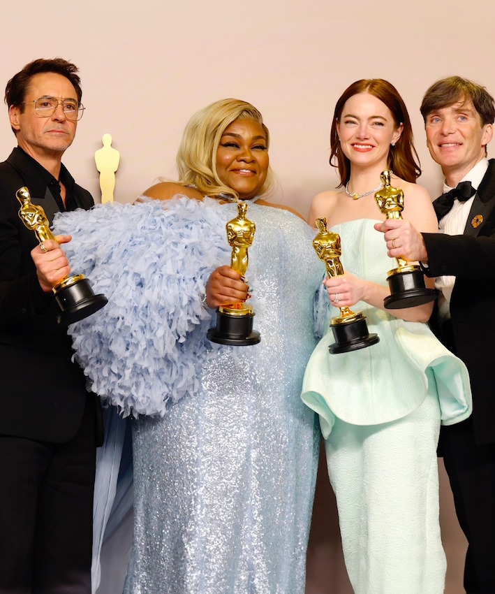 Los Ángeles, Estados Unidos- Y el Óscar es… dividido. Sin grandes sorpresas la Academia de Artes y Ciencias Cinematográficas (AMPAS) de Estados Unidos dio a conocer a los ganadores a los Premios Óscar 2024, decantándose entre la producción de Estados Unidos Reino Unido ‘Oppenheimer’ que consiguió siete estatuillas de las 13 a las que estaba nominada y entre las que destacan Mejor Película, Mejor Director para Christopher Nolan, además de Mejor Actor Principal para Cillian Murphy, Mejor Actor de Reparto para Robert Downey Jr., y, montaje, fotografía y banda sonora y la hiberno-anglo-estadounidense ‘Pobres criaturas’, de Yorgos Lanthimos, que logró llevarse cuatro premios, entre ellos el de Mejor Actriz para Emma Stone, Mejor Maquillaje, Mejor Vestuario y Mejor Diseño de Producción.