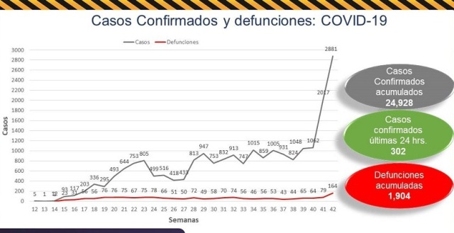 A la fecha se contabilizan también 12 mil 067 recuperados con 80 más; 14 mil 537 descartados con más 112 y 7 mil 090 sospechosos.