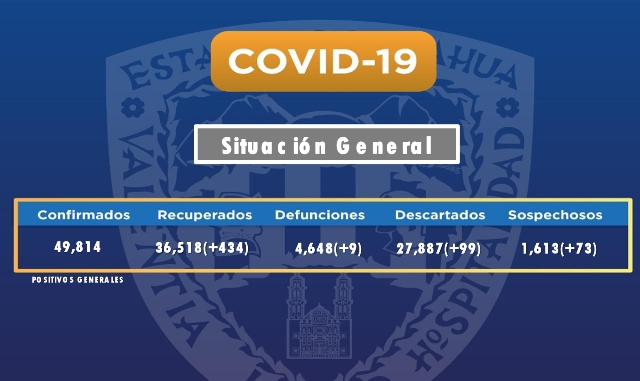 El número de personas fallecidas es 4,648 (+9), (+1 Juárez), (+5 Chihuahua), (+1 Guerrero) y (+2 Guachochi)