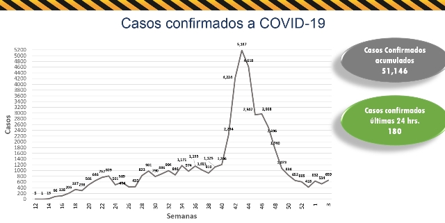 Chihuahua, Chih.- Los casos diarios de contagios en Chihuahua se mantienen en un rango muy algo, al registrarse hoy 180 nuevos y 17 fallecimientos en últimas 24 horas, contabilizando ya la cifra de 51 mil 146 positivos, cuando apenas el pasado 31 de enero tenía 50 mil 281.