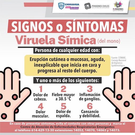 La Dirección Médica de Pensiones Civiles del Estado (PCE) ha informado sobre los síntomas y medidas para la prevención de la enfermedad sintomática denominada Viruela Símica o Viruela del Mono.