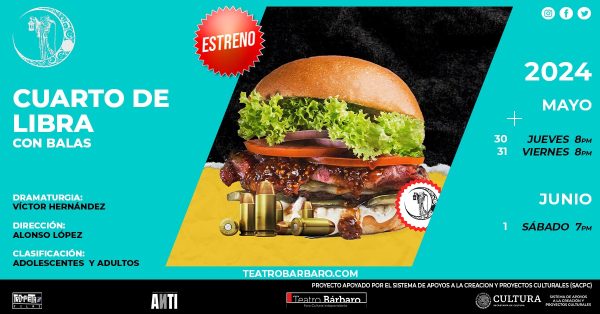 Chihuahua, Chih.- La compañía teatral Lunajero Teatro estrenará en el Foro Cultural Independiente Teatro Bárbaro su más reciente producción, ‘Cuarto de libra con balas’ con funciones del jueves 30 de…