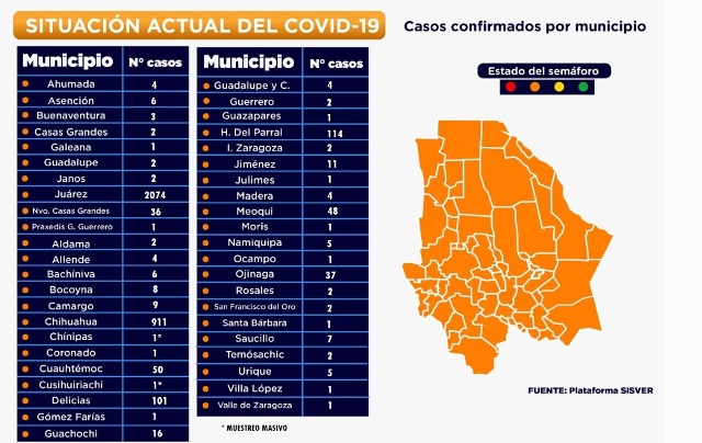 Acumula Chihuahua 4355 casos positivos; han muerto 240 mujeres y 394 hombres