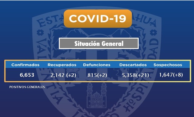 El reporte de la Secretaría de Salud indicó que de los 6 mil 653 casos confirmados, 3 mil 715 pertenecen a Ciudad Juárez, con 25 nuevos que se agregaron en las últimas horas, mientras que en la ciudad de Chihuahua hay 1 mil 625 con 18 casos nuevos.