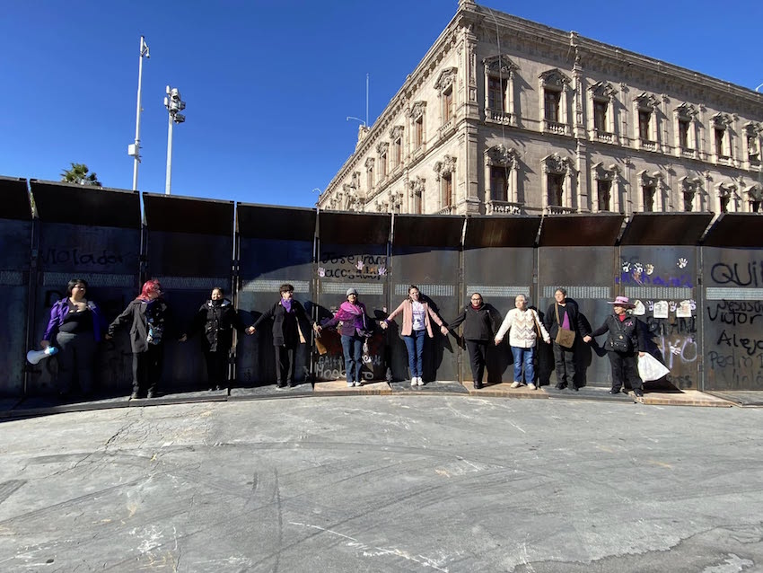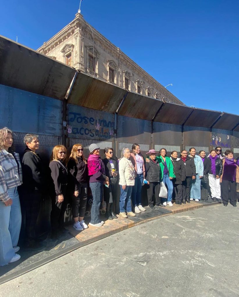Chihuahua, Chih.- El Movimiento Estatal de Mujeres Feministas se reunieron hoy para conmemorar el Día Internacional de la Mujer, aunque este 2025 la ceremonia tuvo que realizarse, por primera vez, junto a la valla metálica instalada por las autoridades estatales y que impide llegar a la tristemente emblemática ‘Cruz de clavos’