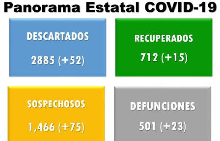 En total se sumaron 23 nuevos fallecimientos en la entidad, subió en 46 los confirmados (17 extemporáneos del 6 de mayo y 11 de junio); aumentaron en 15 los recuperados, en 52 los descartados y en 75 los sospechosos.