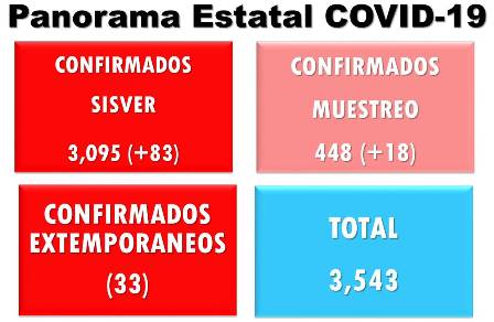 Chihuahua, Chih.- La Secretaría de Salud del Gobierno del Estado informó que se sumaron 17 defunciones para un total de 518 y 83 casos confirmados (nuevos y extemporáneos) de COVID-19 para llegar a 3 mil 095 en la entidad.