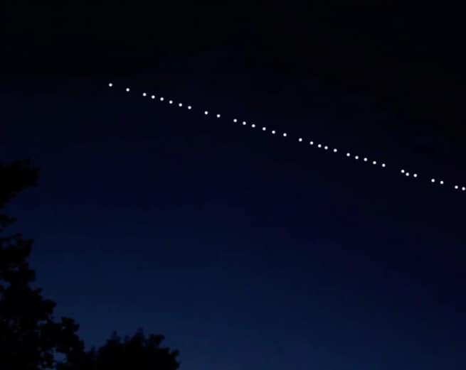 Los Starlink ofrecen un espectáculo impresionante mientras viajan por el cielo, ya que forman un ‘tren de luces’, que en esta ocasión se perdía en buena parte entre las nubes, de ahí el efecto de que pareciera estar girando sobre su propio eje.
