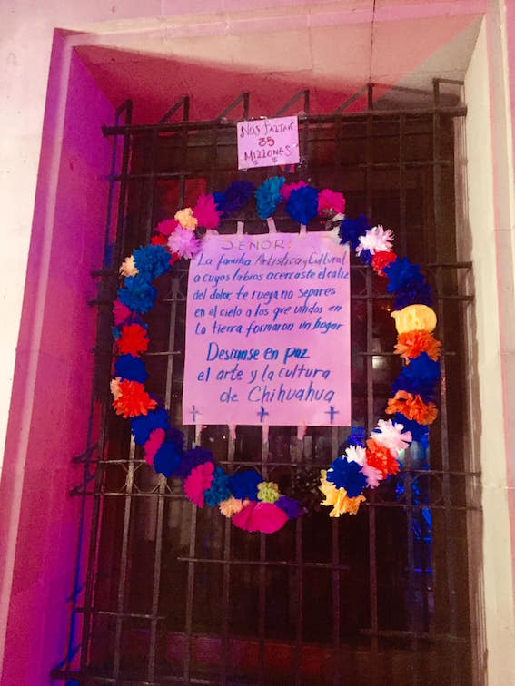 En las acciones emprendidas esta semana por los artistas y creadores unidos destaca la apropiación de espacios durante la presentación del ‘Desfile Día de Muertos’ que organizó el gobierno municipal de Chihuahua y una marcha donde se colocaron coronas fúnebres en los edificios sedes del gobierno estatal y municipal con la leyenda, “Descanse en paz el arte y la cultura en Chihuahua” y las consignas, ‘nos faltan 35 millones’ y ‘una golondrina no hace cultura’.