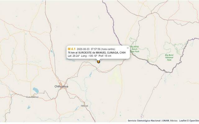 Chihuahua, Chih.- Hoy miércoles 3 de junio, a las 6:57 horas de Chihuahua el Sistema Sismológico Nacional Nacional registró un sismo de 4.1° Richter, con epicentro a 76 kilómetros del…